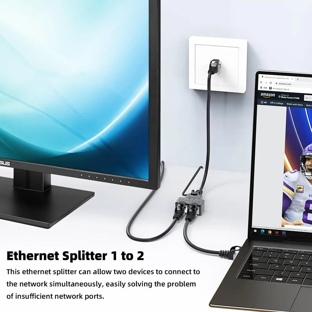 Répartiteur Ethernet 100 Mbps, adaptateur Internet 1 vers 2 ports RJ45 doubles avec câble d'alimentation USB, prend en charge la mise en réseau simultanée de 2 appareils