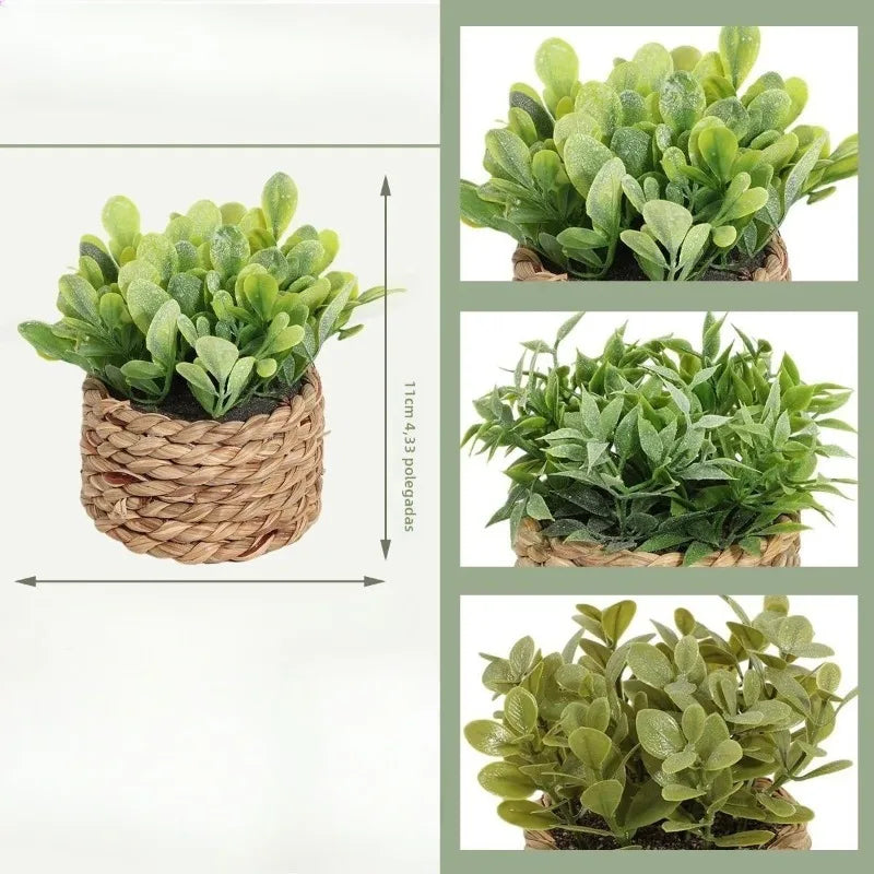 Plantes artificielles vertes, herbe d'eucalyptus tissée, petites plantes en pot, monticule d'herbe, matériau PE, décoration créative pour la maison et le bureau