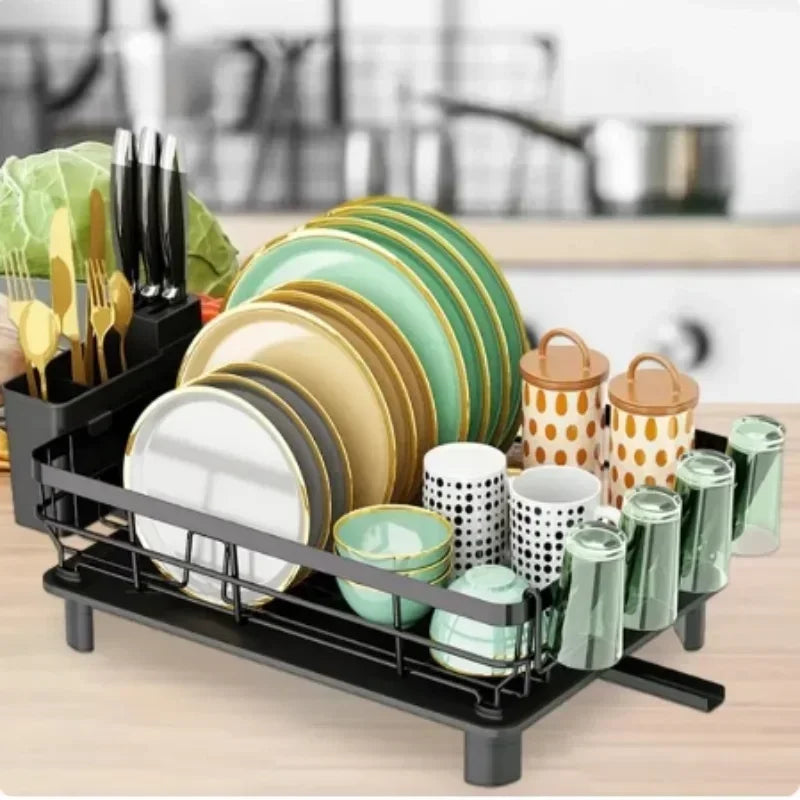 Égouttoir à vaisselle avec égouttoir, léger, noir, pour comptoir, organisateur d'ustensiles, accessoires de cuisine, support de rangement pour vaisselle