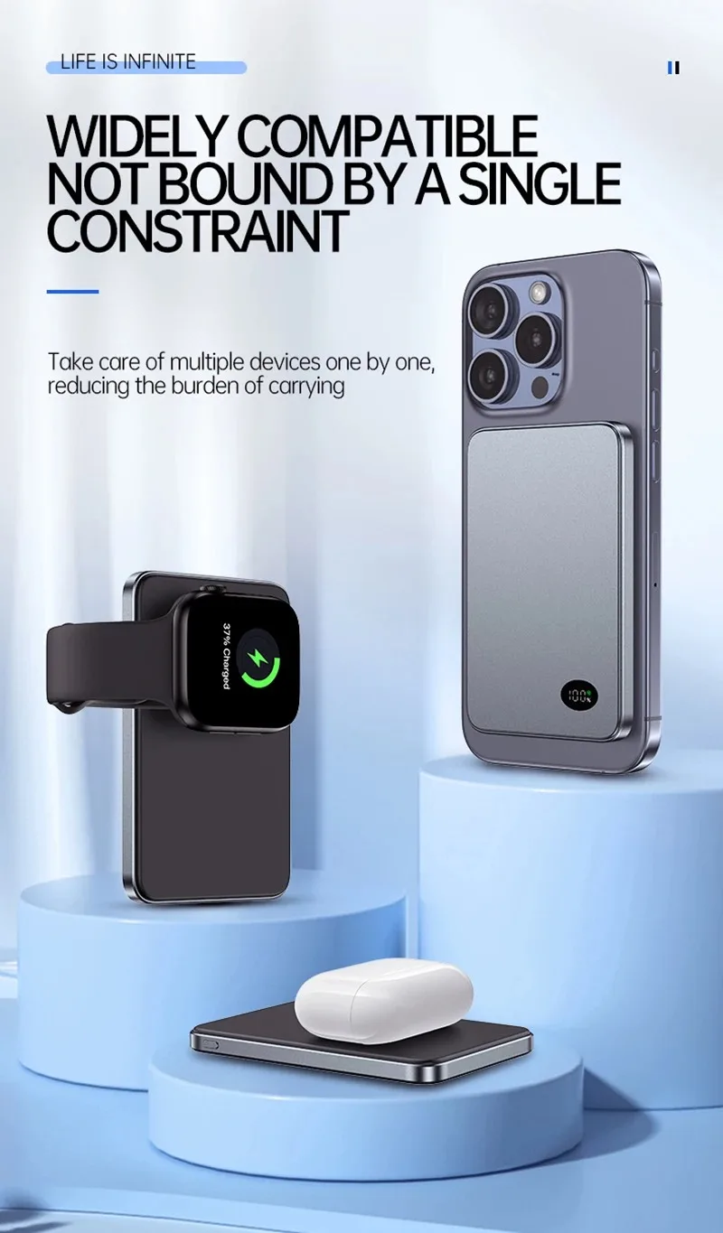 Xiaomi Batterie externe magnétique sans fil fine 10 000 mAh PD20W à charge rapide pour Magsafe, compatible avec iPhone et Samsung